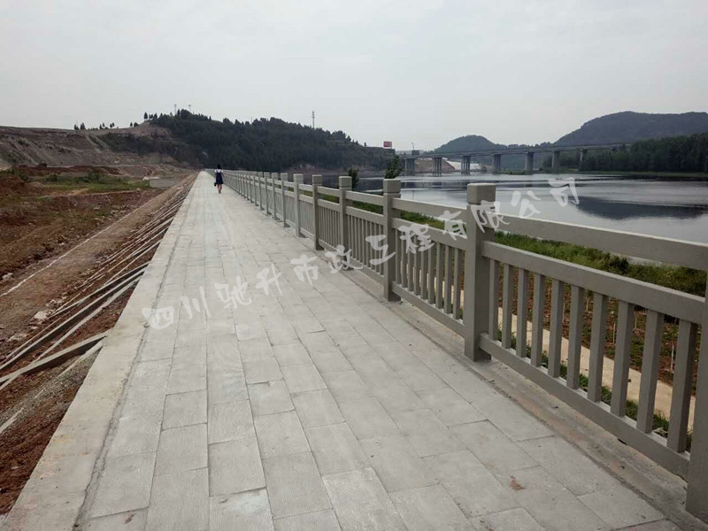 2017年2月~5月,我公司承接的綿陽市鹽亭縣梓江河仿木欄桿工程4300米。